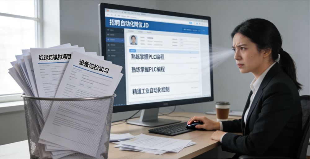 ![]() 你的项目 / 实习经验,在 HR 眼里是 “无效凑数”很多自动化本科生(或者就业老师都在教学生)觉得我 “有项目、有实习经验就够了,企业也会认为我有一定的社会阅历,在招聘的时候会更有优势”,但大部分学生的经验和岗位需求其实是完全脱节的。某新能源头部企业 HR 透露:“我们招 PLC 调试工程师,简历里全是‘红绿灯模拟项目’‘工厂设备巡检实习’,这些经验跟调试没一毛钱关系,三秒钟直接就 pass 了。” 以下 3 种 “不匹配” 情况,是本科求职的重灾区,看看你中了没: