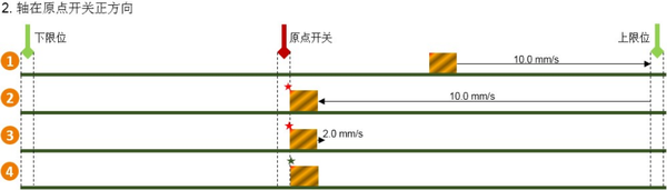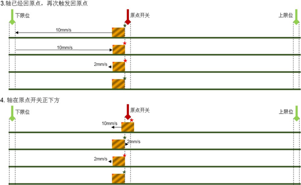 2. 执行步骤与结果 执行结果:当轴在运动过程中触碰原点开关有效边沿时,会立即将当前坐标更新为MC_Home指令设定的“Position”值,且轴不会停止或改变速度,直至完成当前运动指令的路径后停止。 3. 核心特点总结